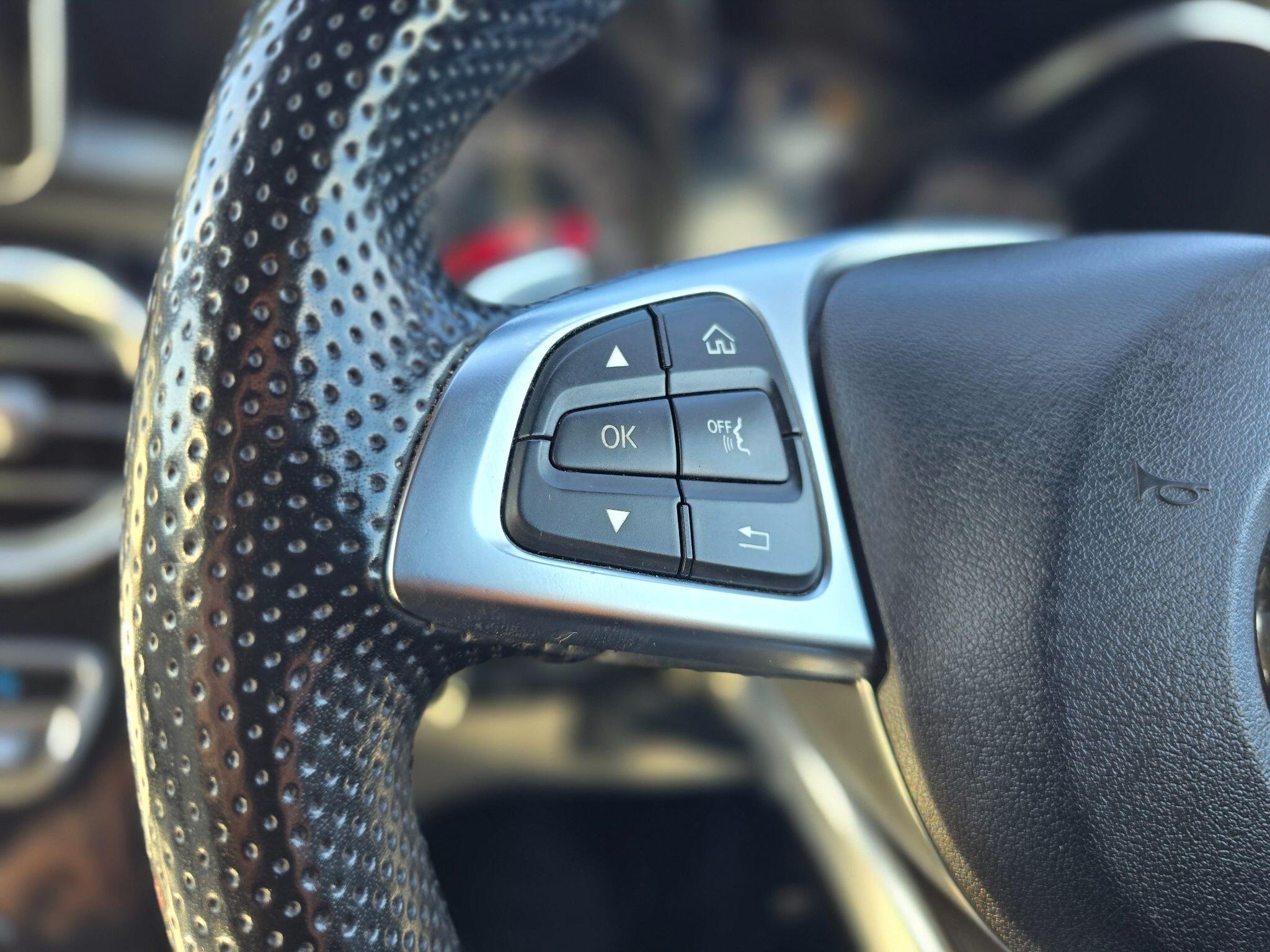 - Steering Wheel - 3-Spoke Multi-Function AMG in Leather with Flattened Bottom Section - Chrome Inserts and Perforated Leather in Grip Area